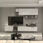 ชั้นวางทีวีแบบแขวนลอย รุ่น RENNY หน้าบานสีขาว เคลือบเมลามีนเนื้อมันเงาเรียบหรูดูแพง คงทน มีให้เลือกตั้งแต่ 1 ถึง 3 เมตร